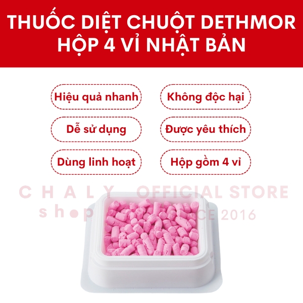 – Hộp viên diệt chuột Dethmor Nhật Bản hộp 4 vỉ tại Chaly là mẫu mới nhất hiện hành