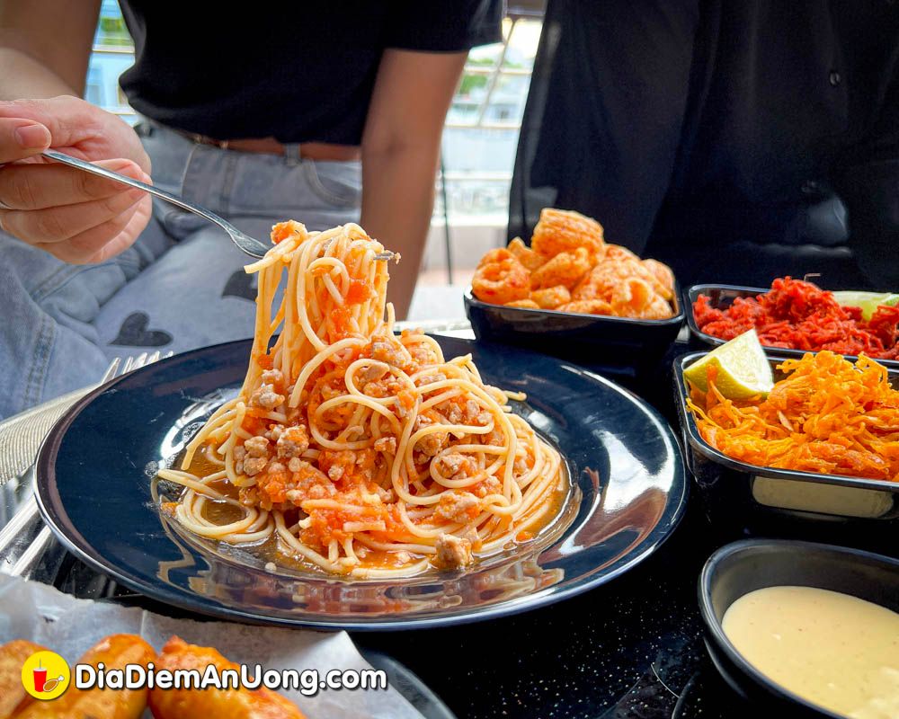 Mỳ Ý không quá xuất sắc nhưng lại có hương vị rất riêng. Sợi mì béo và dai cùng sốt thịt bò bằm đậm đà. Mình muốn có thêm chút cheese cho béo béo nữa thì tuyệt.