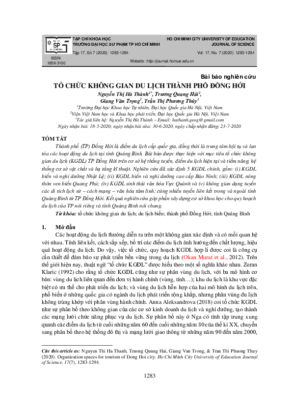 arrow_back_iosTổ Chức Không Gian Du Lịch Thành Phố Đồng HớiTrương Quang HảidownloadDownload free PDFAbstract
