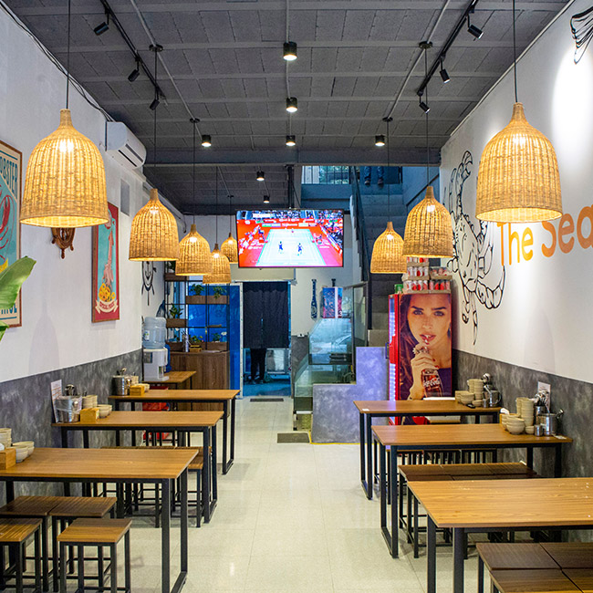 Đến với Nhà hàng The Seafood, thực khách không chỉ thưởng thức những món ăn ngon mà còn mãn nhãn với không gian hiện đại, trẻ trung mới lạ, lịch sự ấm cúng, mang lại sự yên bình, thư thái sau những giờ làm việc áp lực ồn ào chốn công sở. Không gian phục vụ thực khách được chia thành nhiều khu vực, đáp ứng tối đa nhu cầu của thực khách.
