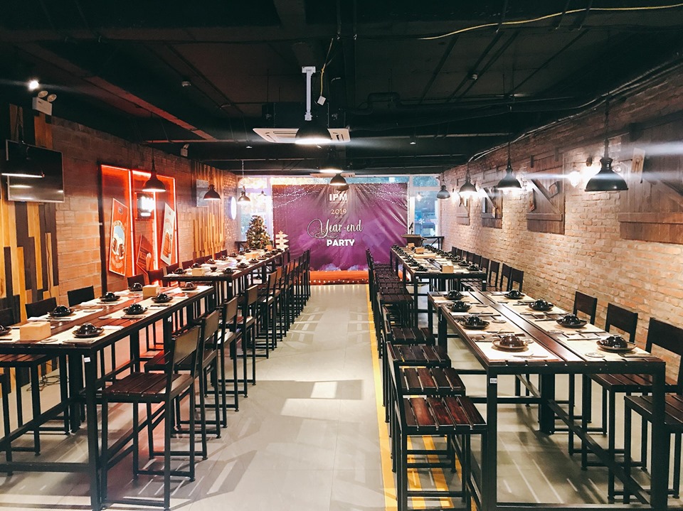 👉 Địa chỉ tổ chức tiệc tất niên, tiệc công ty cuối năm, tiệc liên hoan tại 3 cơ sở được thiết kế theo phong cách cao bồi miền tây, tông màu trầm. Ngoài ra có phòng VIP để tổ chức tiệc vừa và nhỏ.