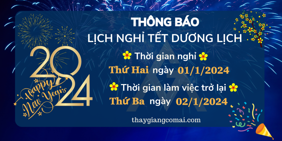 được viết bởi Thầy Giảng - Cô Mai 03/11/2023THÔNG BÁO LỊCH NGHỈ TẾT DƯƠNG LỊCH 2024
