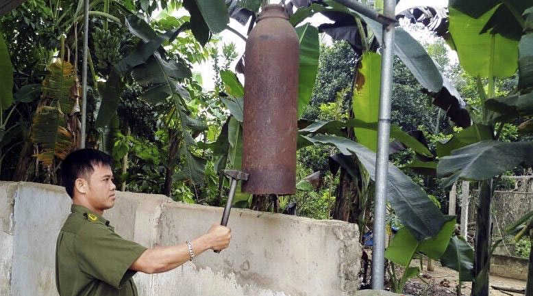 | Một trong nhiều chiếc kẻng được bố trí khắp các thôn ở xã Tân Phú. |