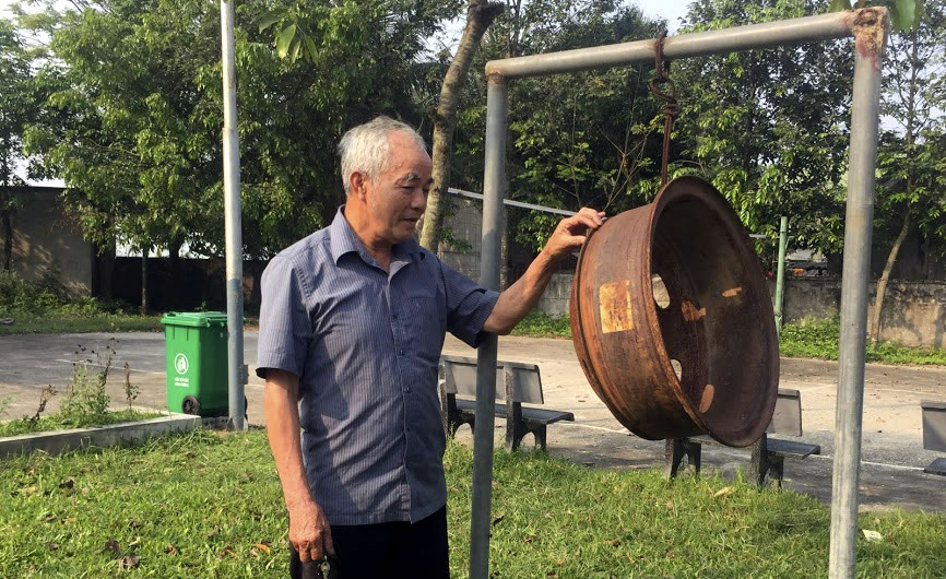 | Chiếc kẻng được bố trí tại sân bóng chuyền xóm Phong Hòa, xã Hưng Hóa. |