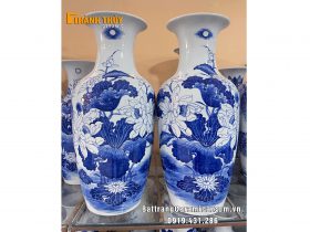 Lọ lục bình vẽ hoa sen cao cấp 60 cm