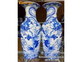 Lục bình trên bàn thờ vẽ rồng cao 60 cm
