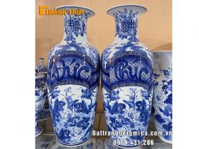 Lộc bình vẽ vàng 24k bách hoa phúc đức 60cm