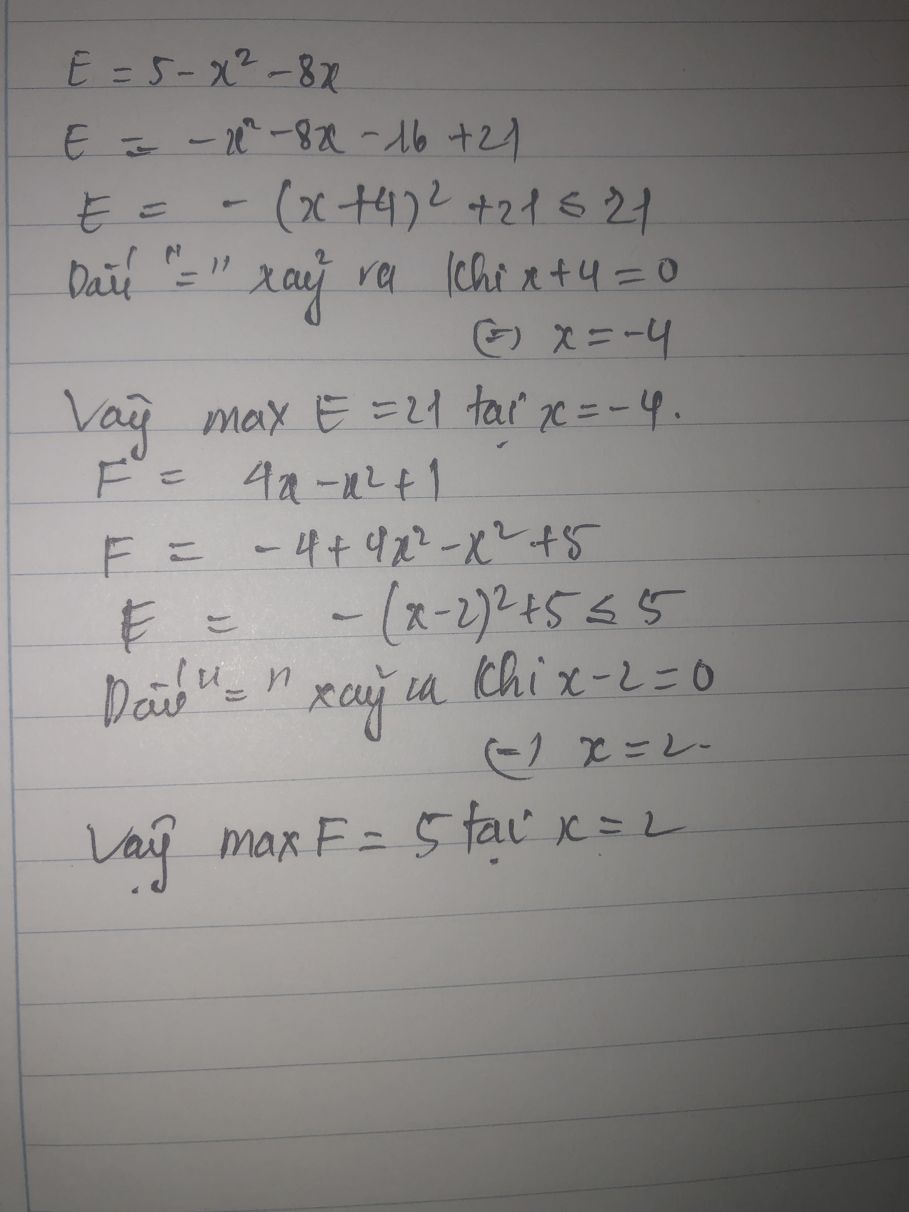 Tìm GTLN Của Biểu Thức : E)5-8x-x^2 F)4x-x^2+1