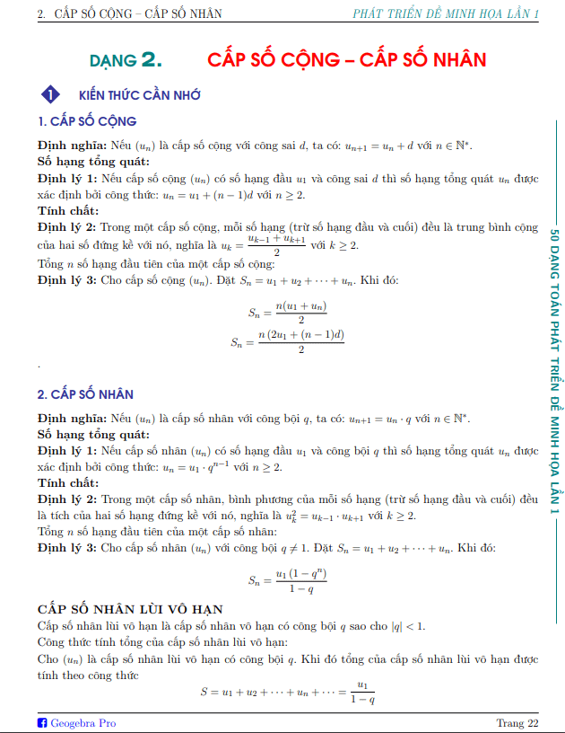 Bài tập cấp số cộng – cấp số nhân ôn thi THPT môn Toán