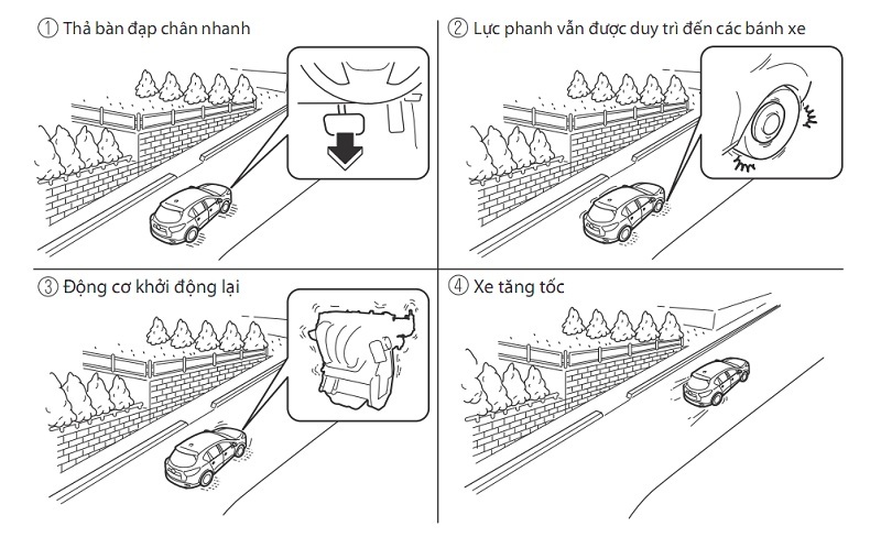 Chức năng giúp xe không bị trôi xuống dốc khi người lái không đạp bàn đạp chân phanh trong các điều kiện sau: