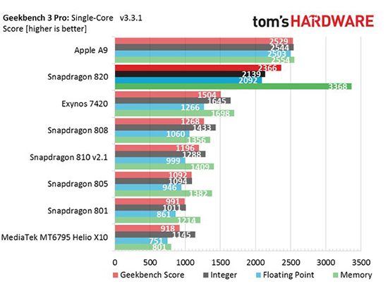 Điểm antutu trên một chiếc máy của Qualcomm dùng để thử nghiệm chip Snapdragon 820 trên phiên bản Antutu 6.0, điểm trên Antutu cao gấp đôi so với vi xử lý Exynos 7420 đang dùng trên các smartphone cao cấp của Samsung.