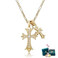 -31% DAZLIME Gold Cross Necklace for Women,14K Gold-Plated Double Cross Necklace Non Tarnish,Handcrafted Double Cross Pendant,Cubic Zirconia Couple Style Jewelry Birthday Valentine's Day Easter Day Gifts 449,541đ 568,041đ