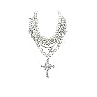 KURTCB Layered Pearl Necklace Gothic Cross Pearl Stacked Necklace for Women 483,786đ