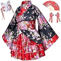 Elibelle Japanese Traditional Dress Kimono Robe for Kids Girls Costume Silk Folding Fans hairstick Fox mask Set Cosplay 1,450,170đ