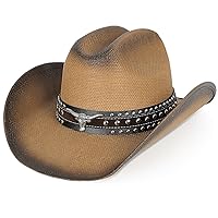 WQWOVRVO Cowboy Hat,Cowgirl hat,Brown Cowboy Hats for Women/Mens Straw Wide with Shapeable Brim Western Cowboy Hat for Womens 1,309,045đ