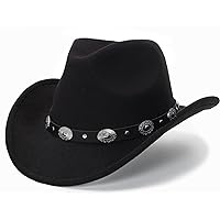 CXQRR Classic Black Western Felt Roll Up Brim Cowboy and Cowgirl Hat for Women and Men - Decoration with Western Belt Bukle 754,211đ