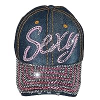 Popfizzy Bling Hat for Women and Girls, Fun Rhinestone Baseball Cap, Bejeweled Distressed Denim Hat, Bling Gifts for Women 931,459đ