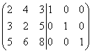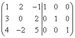 Bước đầu tiên để tìm ma trận nghịch đảo bằng cách khử Gaussian là gán cho ma trận Một ma trận đơn vị cùng thứ tự, ngăn cách chúng bằng một thanh dọc. Chúng tôi nhận được một ma trận kép. Nhân cả hai phần của ma trận này với, sau đó chúng tôi nhận được