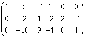 màn cuối các phép biến đổi là phép nhân hàng thứ hai với 2 và phép cộng từ hàng thứ nhất. Kết quả là, chúng ta có một ma trận nhận dạng ở bên trái, do đó, ma trận nghịch đảo là ma trận ở bên phải.