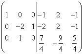 Sau đó, hàng đầu tiên được nhân với (-2) và thêm vào hàng thứ hai của ma trận. Sau đó, chúng tôi nhân hàng thứ 2 với 1/4.
