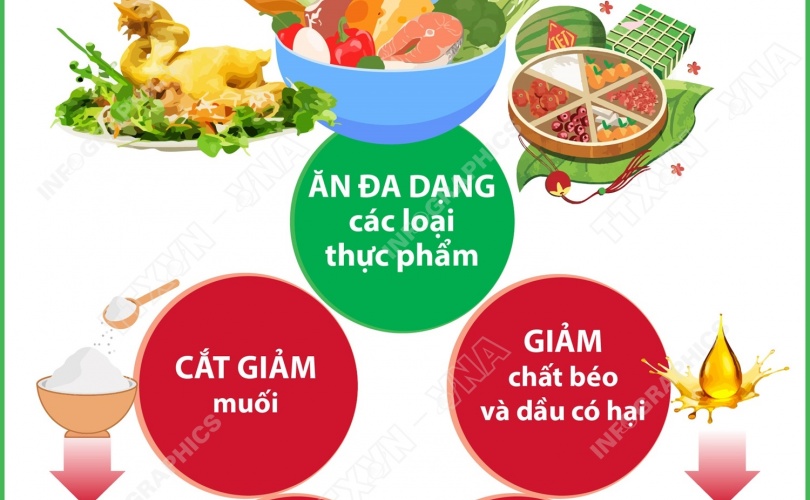 Ăn uống lành mạnh dịp Tết Y tế - Sức khỏe Trong dịp Tết nguyên đán Bính Ngọ 2026, mọi người nên ăn đa dạng các loại thực phẩm, cắt giảm muối, giảm chất béo và dầu có hại, hạn chế đường và hạn chế rượu bia để đảm bảo sức khỏe.