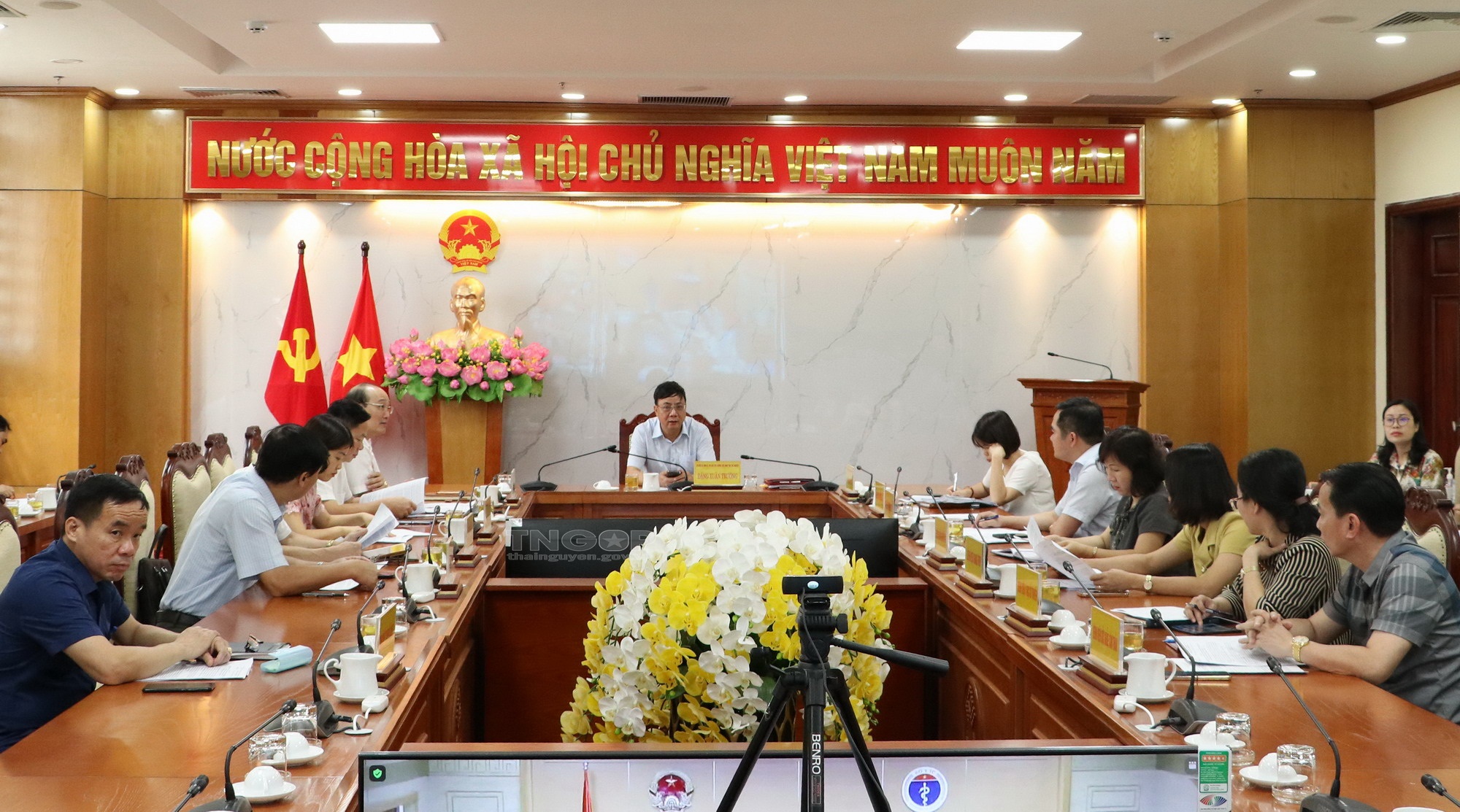 Ngày 29/6, Thứ trưởng Bộ Y tế Nguyễn Thị Liên Hương đã chủ trì Hội nghị trực tuyến với các địa phương trong cả nước để đánh giá tiến độ triển khai tiêm vắc xin phòng COVID-19 và thực trạng trang thiết bị vật tư y tế tại các địa phương. Dự Hội nghị tại điểm cầu tỉnh Thái Nguyên có đồng chí Đặng Xuân Trường, Ủy viên BTV Tỉnh ủy, Phó Chủ tịch Thường trực UBND tỉnh và đại diện các sở, ngành, đơn vị liên quan.