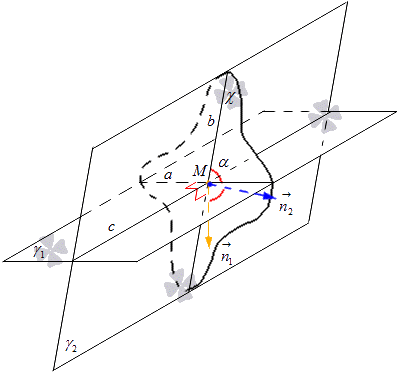 Nếu một bài toán được đưa ra trong đó cần tìm góc giữa hai mặt phẳng cắt nhau γ 1 và γ 2, chúng ta ký hiệu góc mong muốn bằng α.