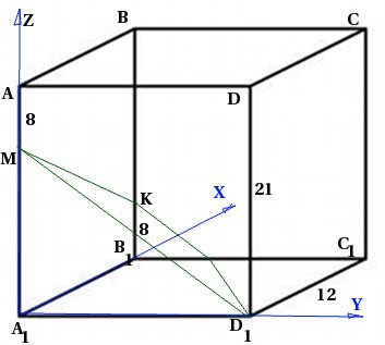 Hãy đặt khối lập phương của chúng ta vào hệ thống hình chữ nhật tọa độ như trong hình, các đỉnh A 1 (1; 0; 1), D (1; 1; 0), B 1 (0; 0; 1), O (½; ½; 0).