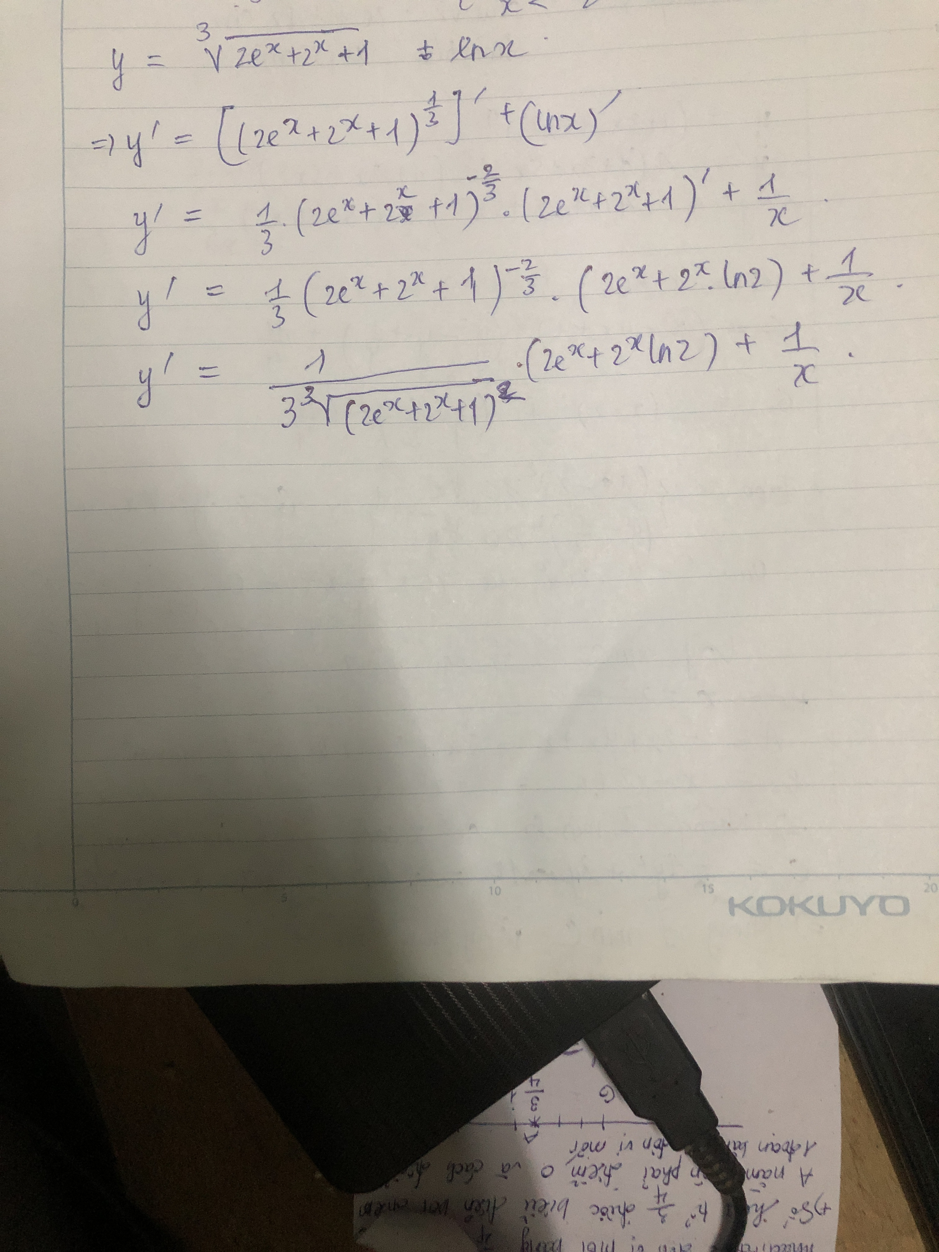 Tính đạo Hàm Của Y=căn Bậc 3 Của (2e^x+2^x+1) +lnx