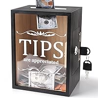 -6% Wooden Tips Jar Tip Collection Box with Lock 6 x 4¾ x 7¾ Inch Money Coin Storage Container Donation Collection Suggestion Raffle Cash Box Jar for Restaurants Musicians Bartender Bars Driver (10) . Mỹ 827,329đ 858,585đ