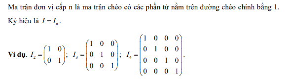 - Ma trận đơn vị cấp n