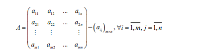 Ma trận A cấp m n trên R chính là một bảng số có hình chữ nhật bao gồm m hàng và n cột, sẽ được được biểu diễn như sau: