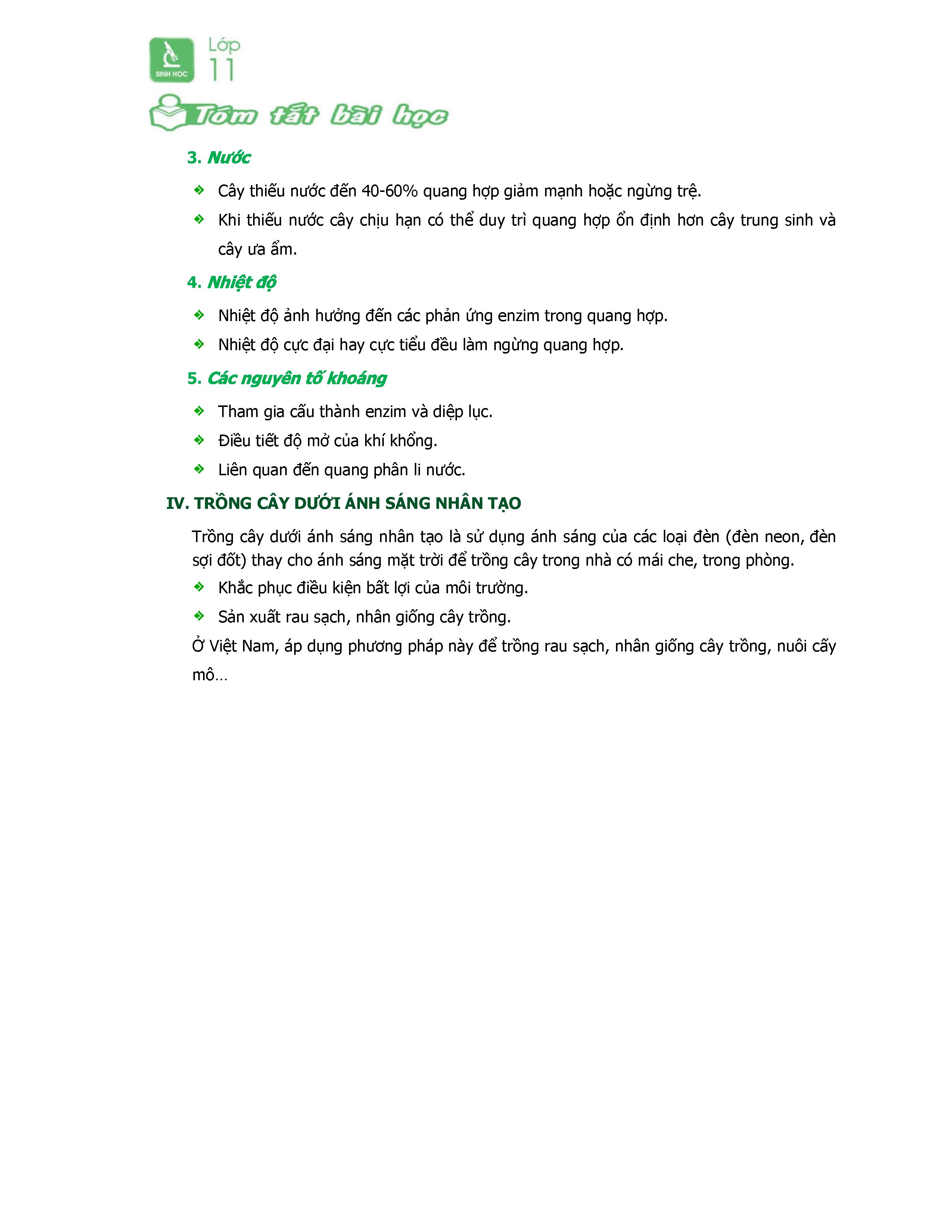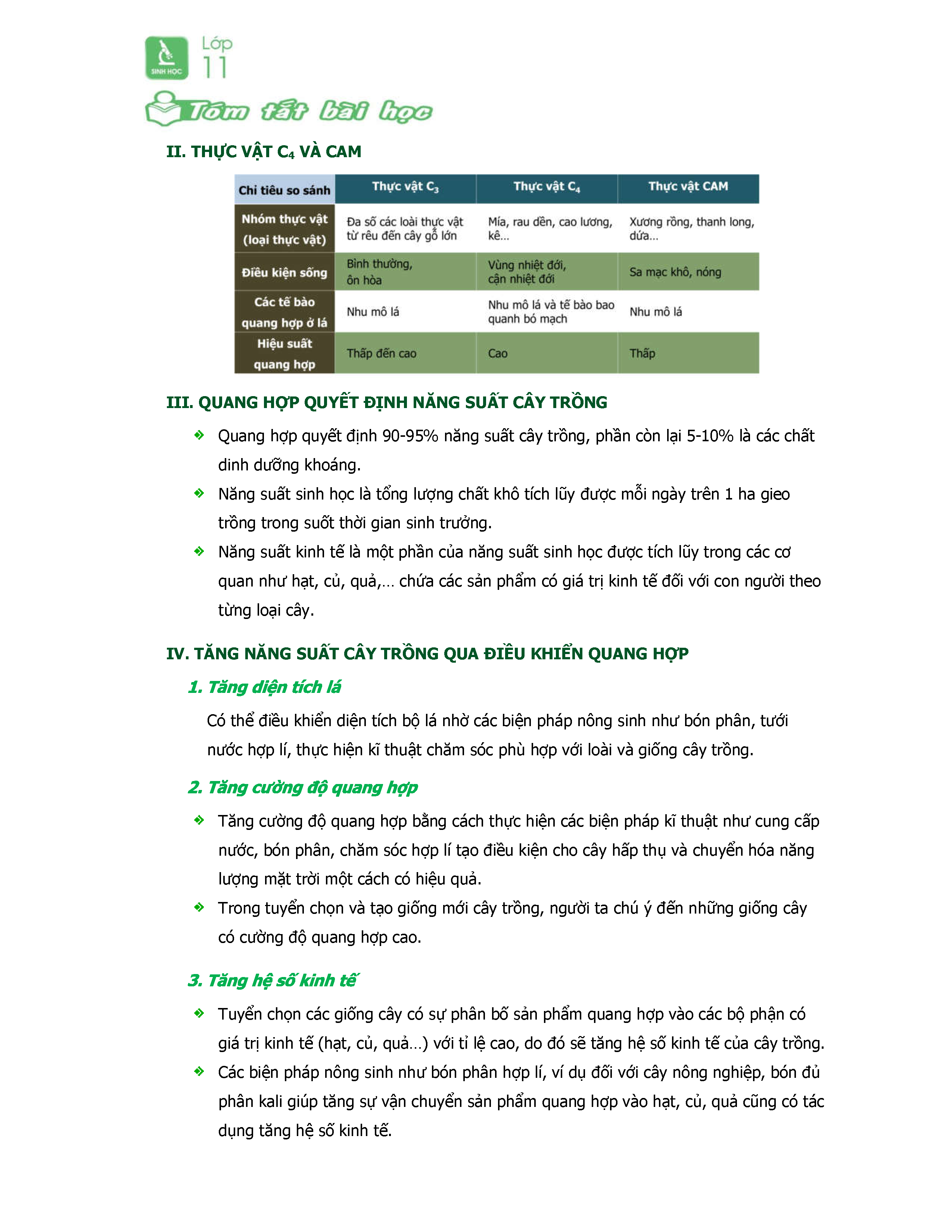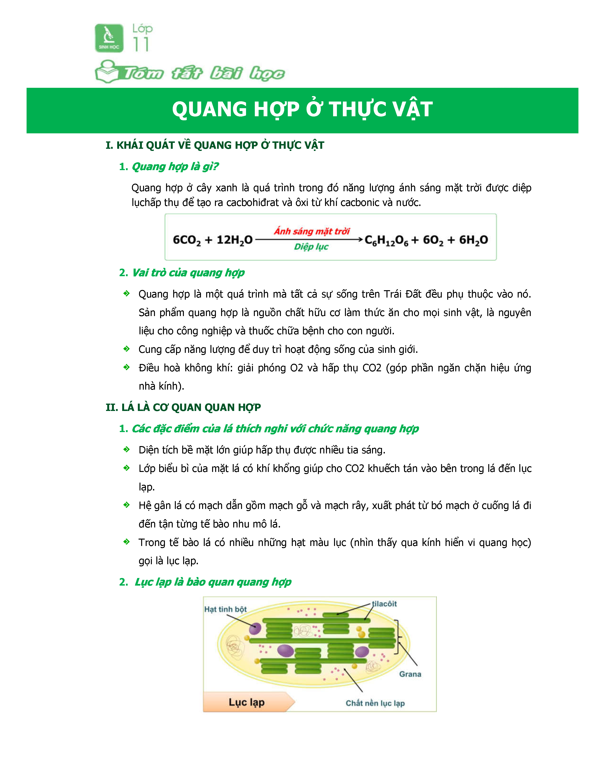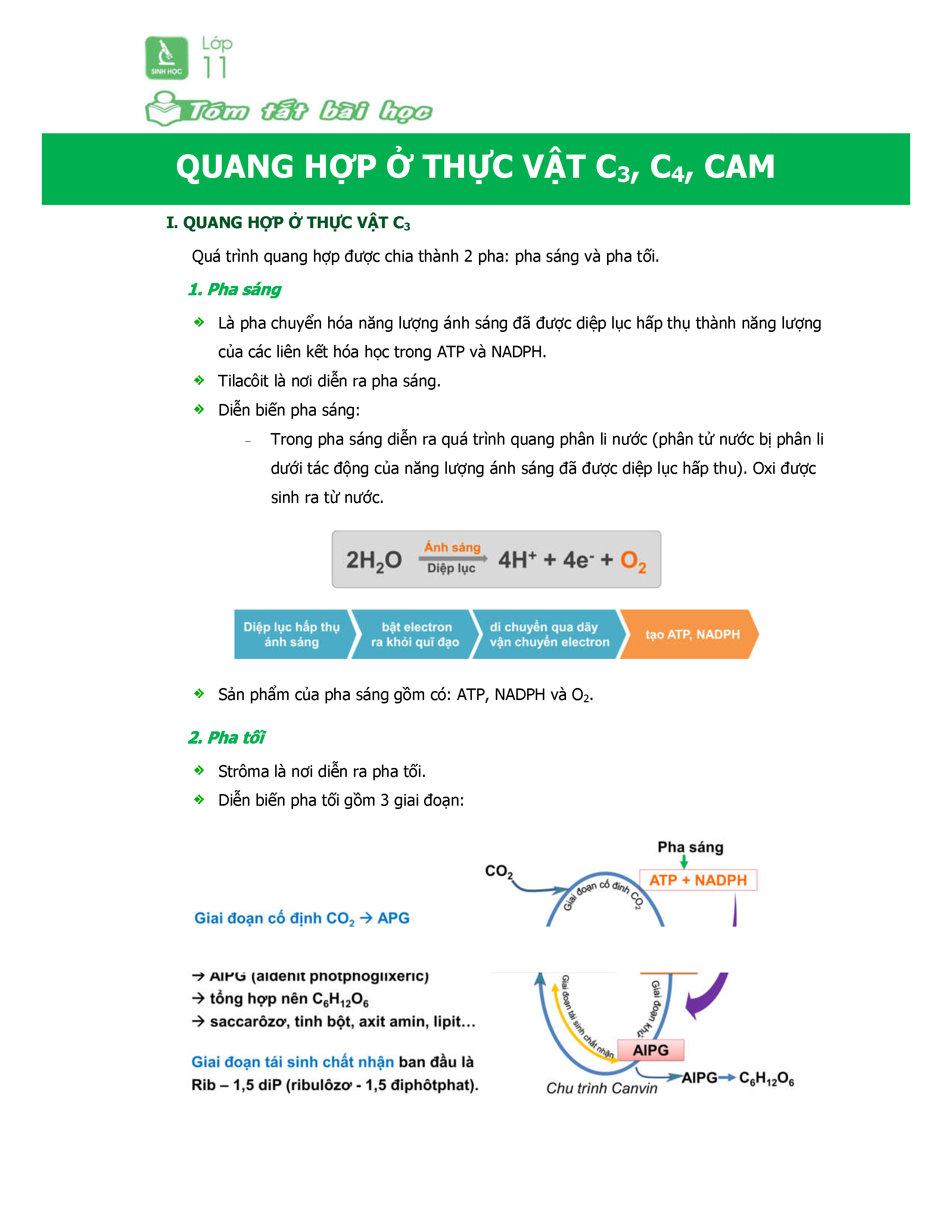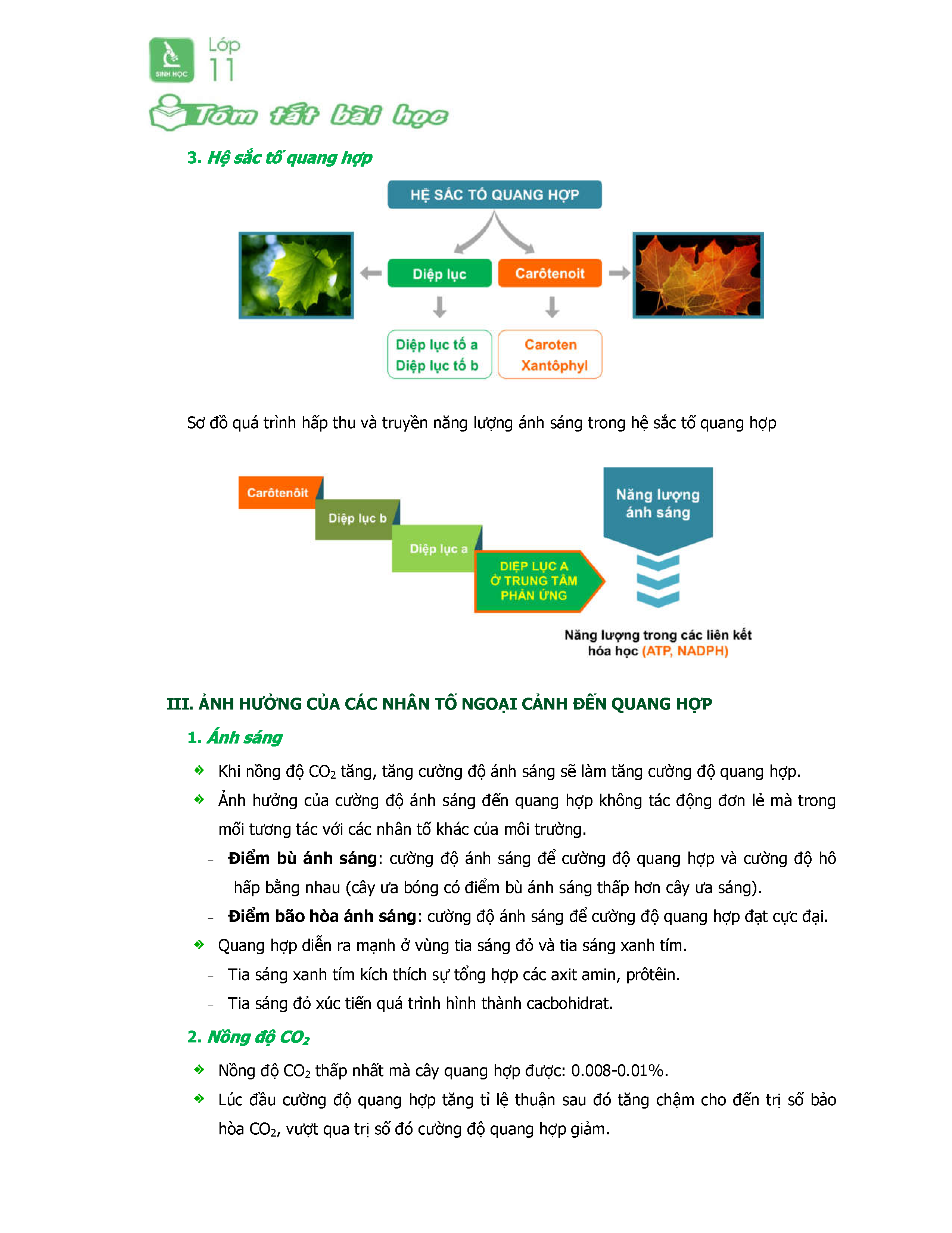 Sinh Học 11-Tóm Tắt Trọng Tâm Chủ đề Quang Hợp