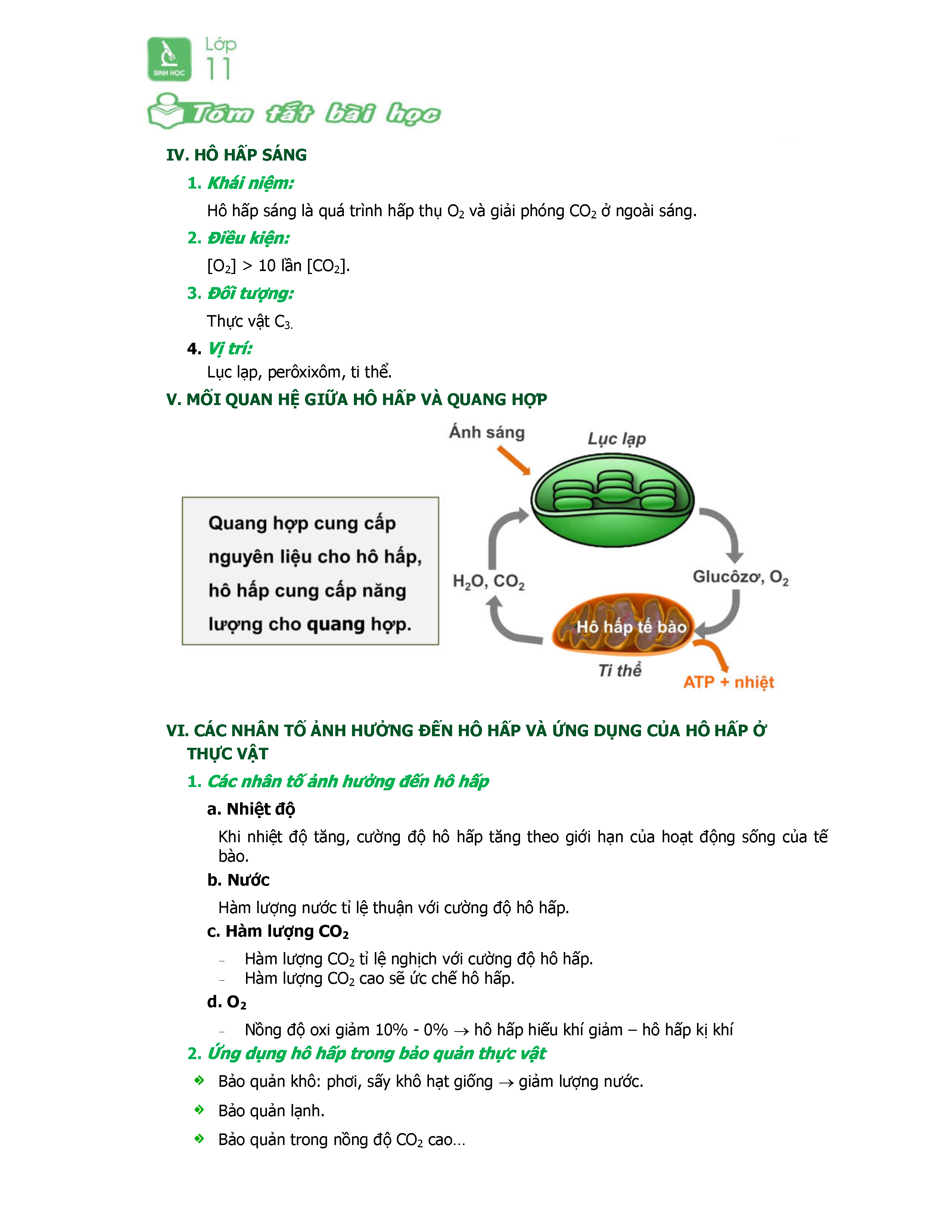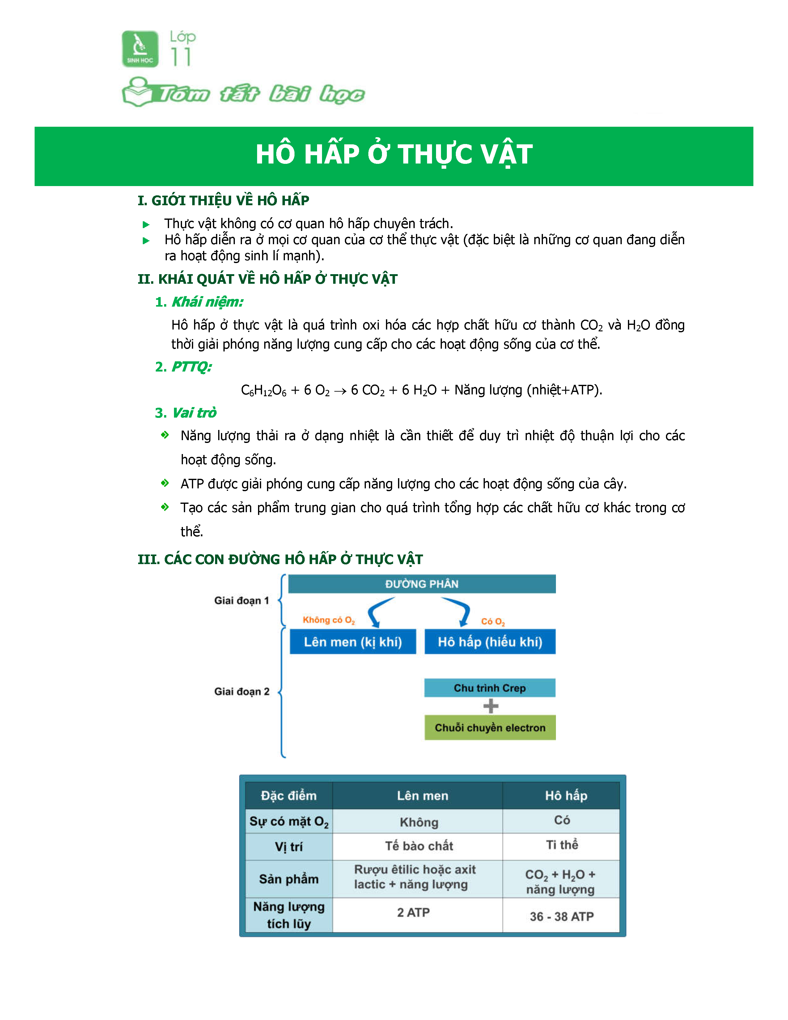 Tóm Tắt Lý Thuyết Sinh Học 11 Bài 12 - Hô Hấp ở Thực Vật