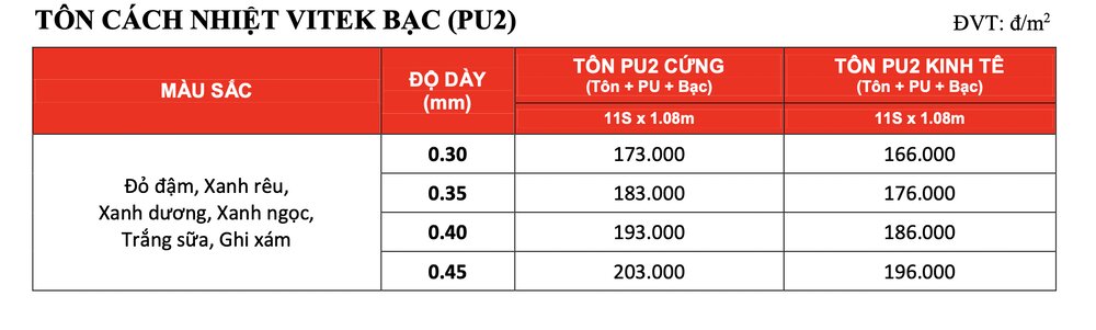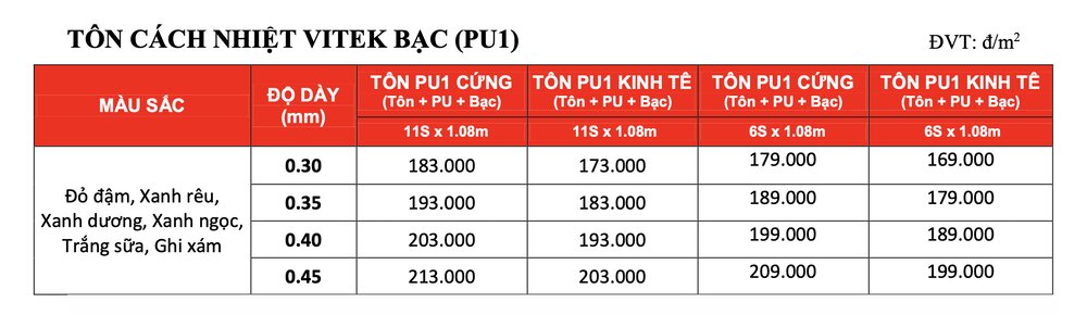 Dưới đây là bảng giá tôn cách nhiệt sóng vuông Olympic để bạn cùng tham khảo: