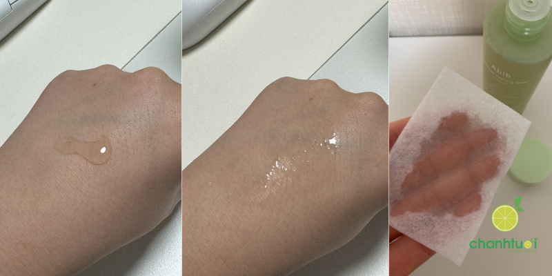 Kết cấu dạng liquid siêu nhẹ, gần như nước, thấm cực nhanh khi apply bằng tay hoặc bông tẩy trang. Cảm giác đầu tiên là mát, dễ chịu, không dính, không bóng, không gây bí da. Sau khi thấm, da trở nên mềm và ẩm nhẹ, chứ không nhờn rít. Toner không mùi, không cồn, phù hợp cả với làn da nhạy cảm.