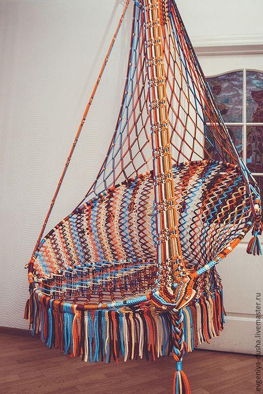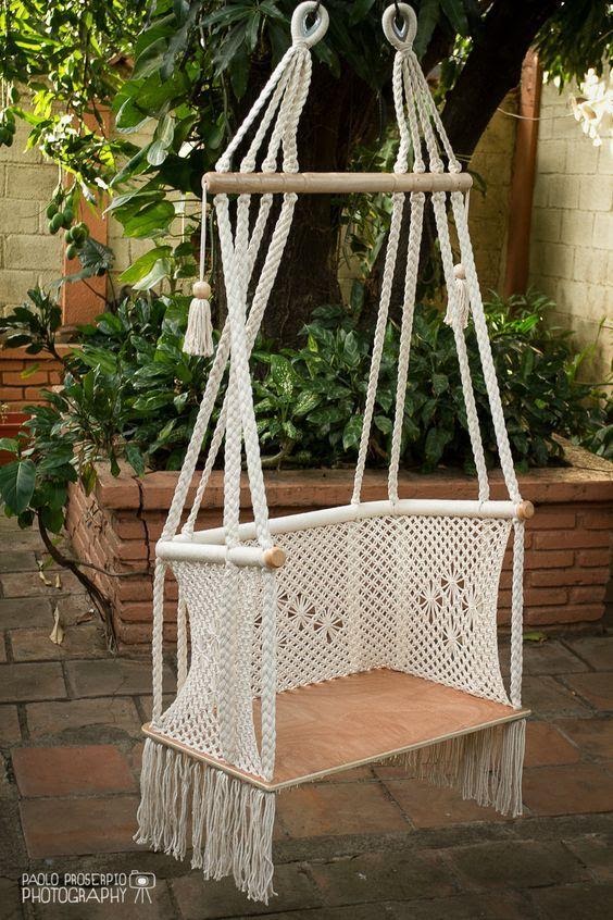 Phần dưới của chiếc xích đu như một chiếc ghế được thắt Macrame ở 4 phía còn phần trên được treo lên nhờ dây được đan một cách chắc chắn.
