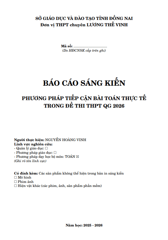 Phương pháp tiếp cận bài toán thực tế trong đề thi THPT QG 2026 môn Toán 28/02/2026