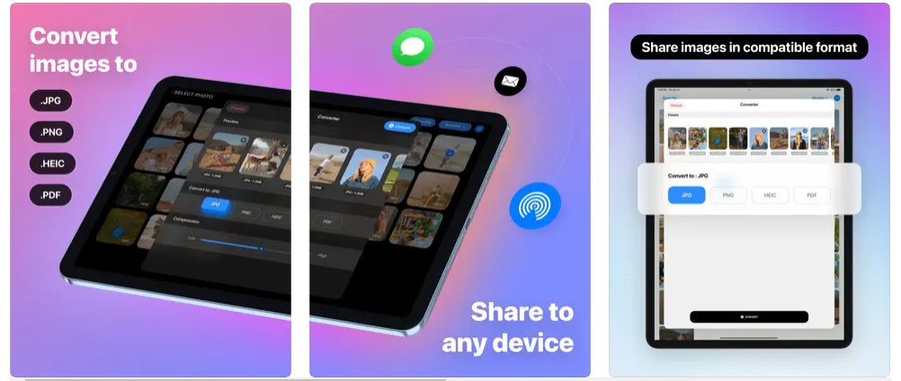 Ứng dụng này được thiết kế để giúp bạn chuyển đổi bất kỳ hình ảnh nào của mình thành các định dạng hình ảnh khác nhau. Các định dạng đầu ra được hỗ trợ bao gồm JPG, PNG, HEIC và PDF.