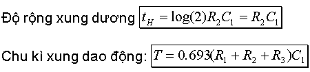 Hình 10 - Công thức tính chu kì và tần số 2.3. Mạch tạo xung với độ rộng xung và tần số độc lập [1] [1] Darvinder Oberoi, CEDTI, Jammy, India - Trích tạp chí edn.com mạch số 498