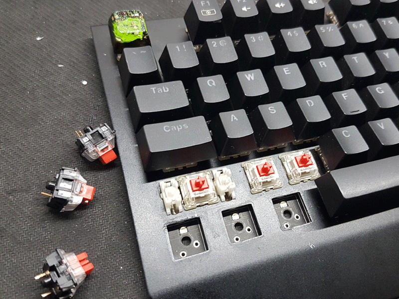 - Và nguyên nhân thứ 2 là nguyên nhân đa phần là phải thay Switch nhất đó chính là bàn phím của anh em gặp các lỗi liên quan đến Switch Ví dụ: Ấn chập chờn, khó ấn, liệt nút, chân switch han gỉ,...