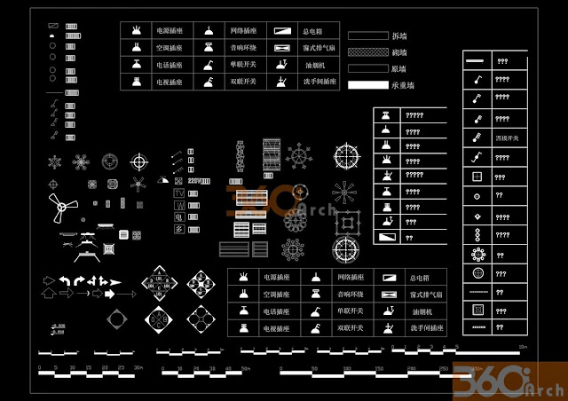 Thư viện autocad về các đồ nội thất như: đồ điện, tỷ lệ, đèn quạt