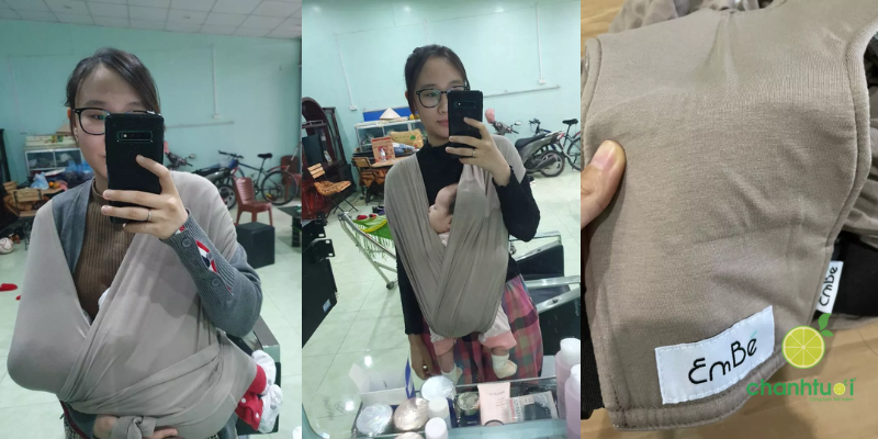 Mình cũng khá thích các chi tiết nhỏ nhưng tinh tế như dây bo chun cuốn gọn phần dây thừa, hay vải che nắng nhẹ giúp đi dạo ngoài trời mà vẫn bảo vệ bé. Màu sắc trung tính, hiện đại như Mocha, Lavender hay Charcoal cũng rất dễ phối đồ cho cả bố và mẹ. Nói chung, EmBé Sling Nova là chiếc địu nhẹ, êm ái, dễ sử dụng và an toàn – hoàn hảo cho những bố mẹ muốn vừa gọn gàng, vừa thoải mái khi chăm con.