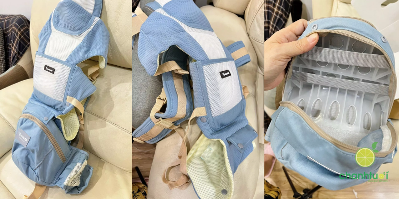 - Đai vai và lưng rộng, phân bổ lực đều, giảm mỏi khi địu lâu.