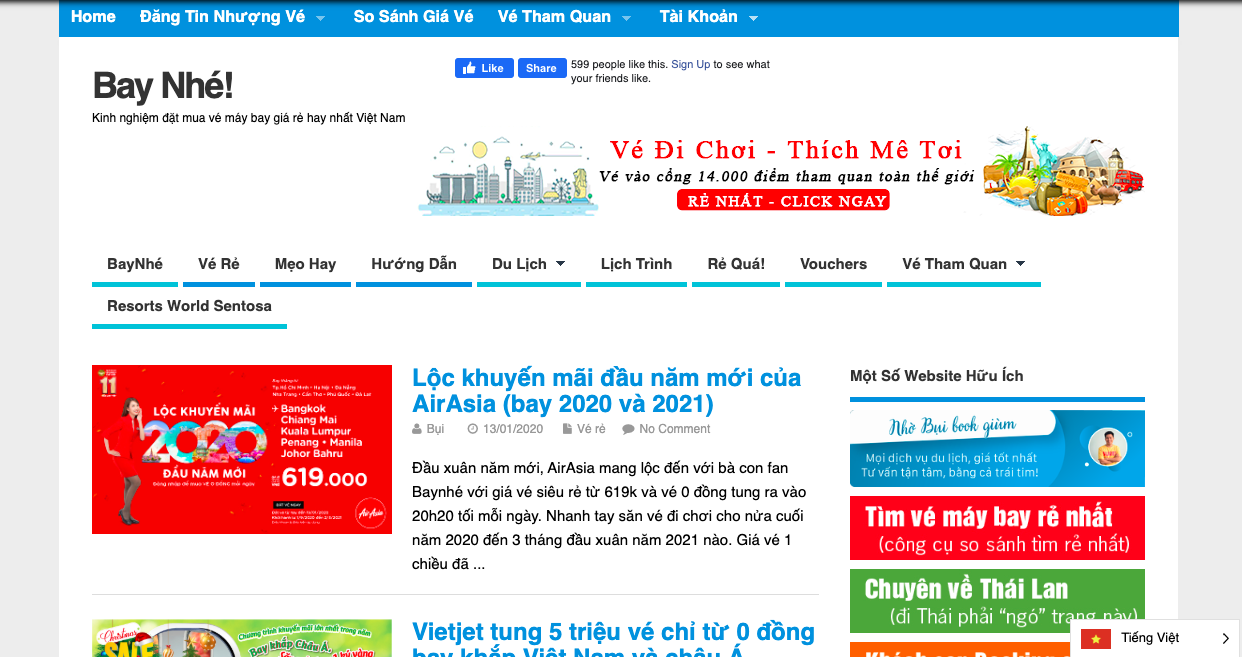 Bay nhé là trang nhật ký điện tử lâu đời và hữu ích nhất cho người yêu du lịch Việt. Đây là trang thông tin của blogger Phạm Việt Anh nổi tiếng tại Hải Phòng với những bài viết truyền kinh nghiệm cần thiết cho bất kỳ ai có nhu cầu du lịch. Những thông tin được yêu thích nhất vẫn luôn là bí quyết săn vé máy bay giá rẻ, cách tiết kiệm chi phí trên blog.