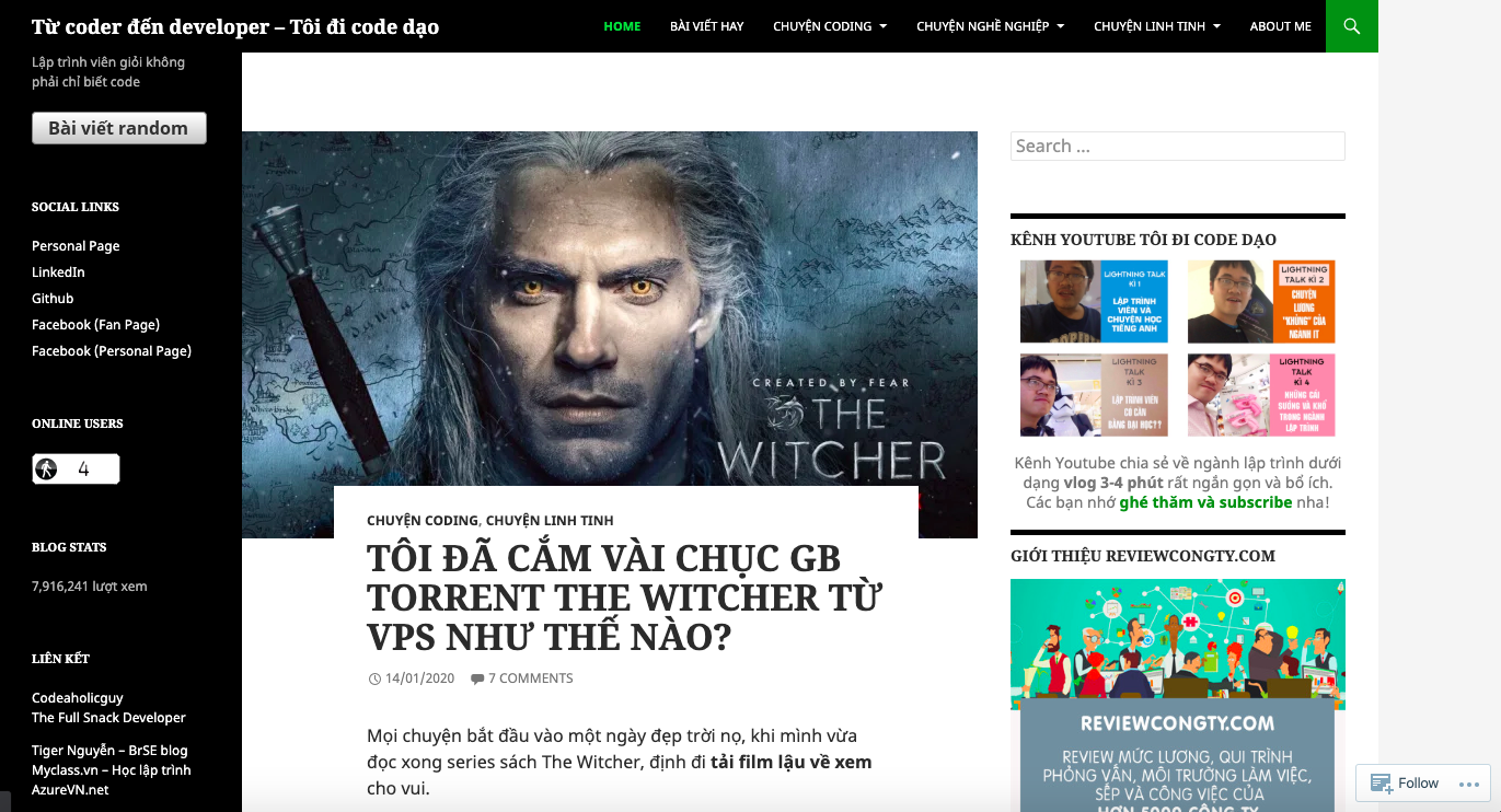 Tuy nhiên gần đây, lượng độc giả và dân Seo len lỏi vào khá nhiều nên chất lượng bài viết có phần giảm sút. Nếu chỉ quan tâm đến kiến thức WordPress và Seo thì bạn hoàn toàn nên học hỏi từ Blog này.