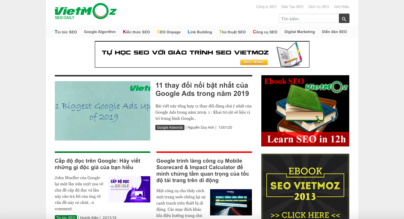 Việt Moz cũng là Blog khá nổi tiếng trong thời gian gần đây với đủ lĩnh vực liên quan SEO. Những bài viết chia sẻ kiến thức được người dùng quan tâm bởi chất lượng ổn định và rất hữu ích. Blog này được lập ra bởi Lê Nam, một nhân vật có tên tuổi sau quá trình vật lộn với nghề đã tìm ra được con đường riêng cho chính mình và chia sẻ lại những kiến thức mấu chốt sau chặng đường thành công.