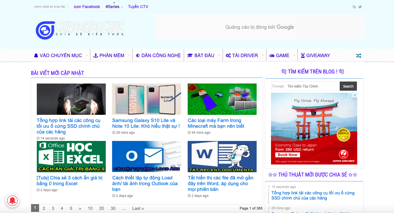 Ra đời 2015, blogchiasekienthuc.com đi từ một blog cá nhân nhỏ hẹp đã phát triển chóng mặt với lượng traffic cực lớn bởi những chia sẻ hữu ích cho người dùng. Blog này đã chiếm trọn trái tim người yêu công nghệ với những bài viết chia sẻ ấn tượng mà ai cũng quan tâm và cần thiết trong công việc. Những thủ thuật này thuộc lĩnh nhiều lĩnh vực khá nhau: máy tính, internet, diệt virus, phần mềm hữu ích miễn phí…