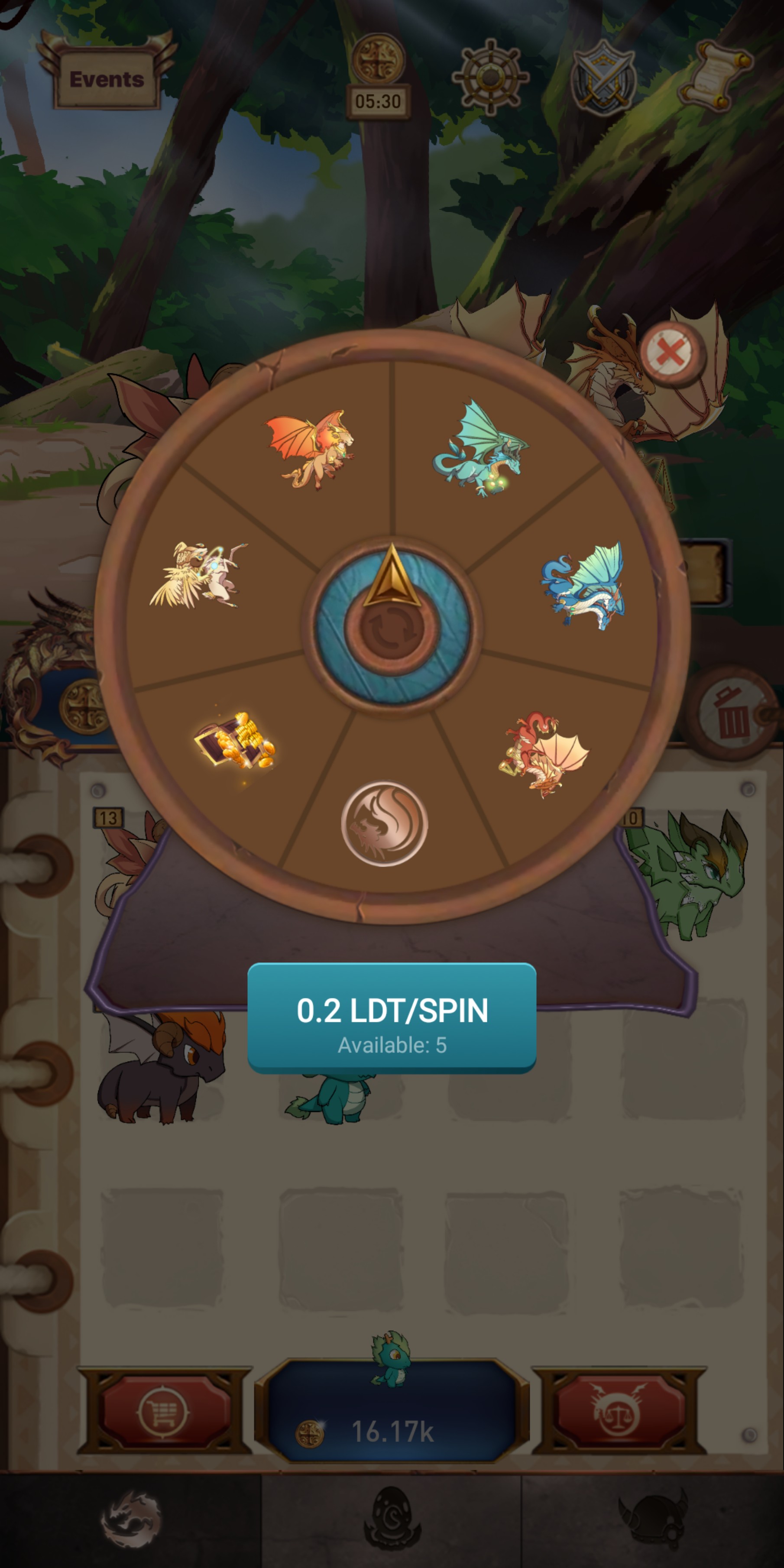 Vòng xoay may mắn ở ô miễn phí bên trái, các bạn xem xong video thì được 1 lần quay, quay cả 5 lần, mỗi lần quay được mảnh rồng, vàng hoặc 0,1 đến 0,2 LDT, mỗi lần 12h đêm đã được gia hạn và có thể được tiếp tục. Họ cho 5 lần miễn phí và 5 lần trả phí 0,2 LDT 1 lần.