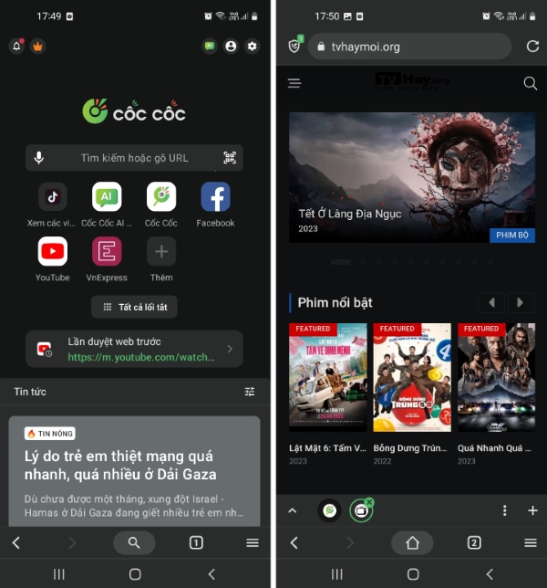 Trình duyệt Cốc Cốc xem phim miễn phí trên Android không quảng cáo